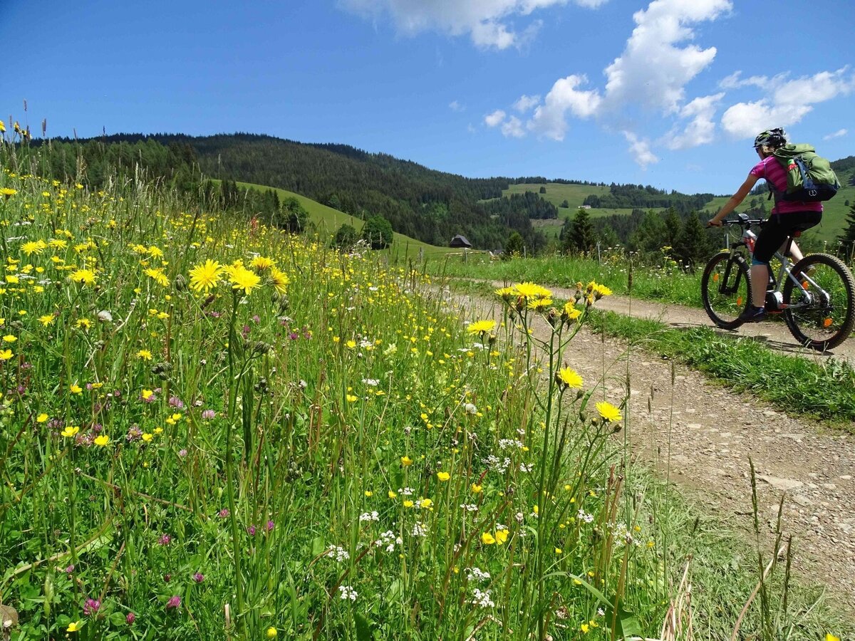Wir radeln auf den 1670 m hohen Aussichts- und Hausberg von Knittelfeld ausgehend über die Kleinlobming. Eine weich geformte Landschaft mit abwechselnden Wald- und Wiesenflächen und den darin eingebetteten Haus- und Hofstellen eignet sich perfekt für diese E-Biketour. Der Ausblick im Gipfelbereich ist beeindruckend. Wir sehen auf das Judenburg-Knittelfelder Becken in der Erlebnisregion Murtal in der Steiermark mit der umliegenden Bergwelt der Seetaler, Wölzer und Seckauer Alpen bis hin zum Grazer und Leibnitzer Becken.