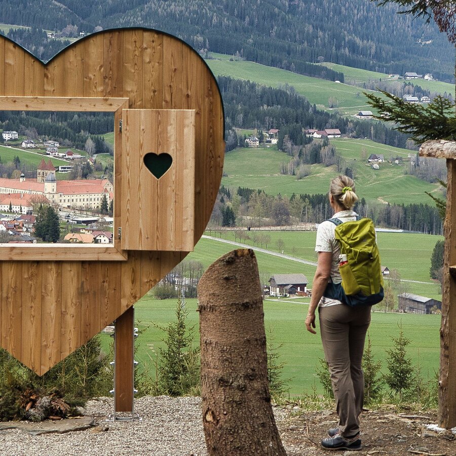 Für eine Rundwanderung kann man die gemütlichere Variante über den Bauernhof vlg. Willhuber nach Seckau wählen.
