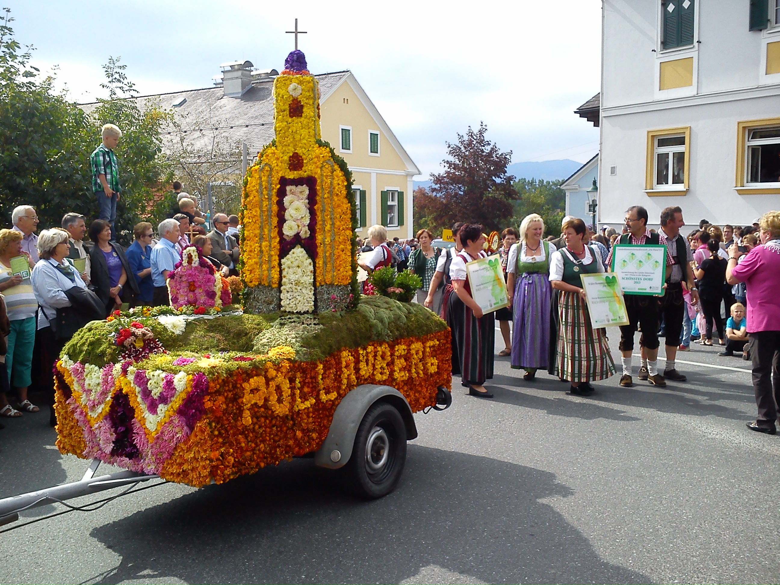 Alle zwei Jahre findet in einem der zehn Blumendörfer der Steirischen Blumenstraße in der Oststeiermark der traditionelle Blumenkorso mit festlich geschmückten Blumenwägen statt. Bei der im wahrsten Sinne des Wortes bunten Veranstaltung, passend zur Oststeiermark, dem Garten Österreichs, werden nicht nur die schönsten Blütenkunstwerke prämiert, sondern auch die neuen Blumenhoheiten gekürt.