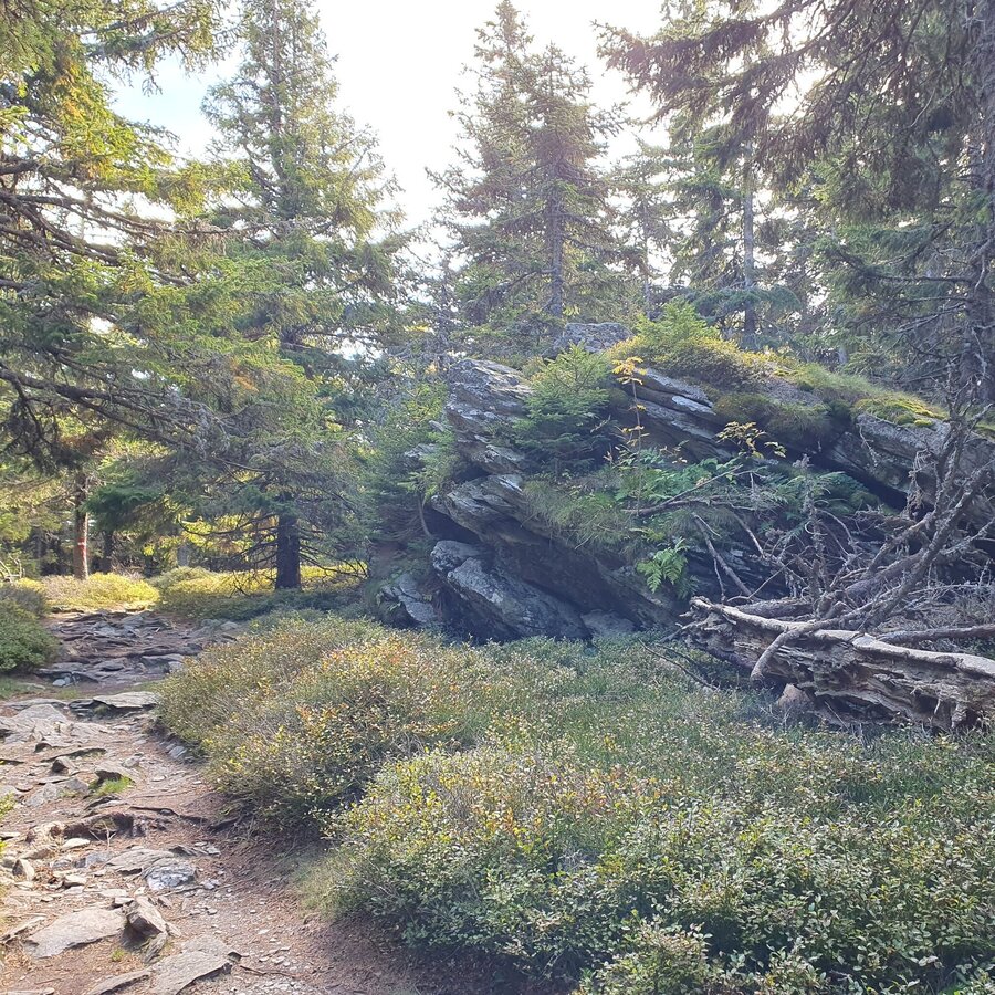 - es geht kontinuierlich bergab, weiter durch den Wald