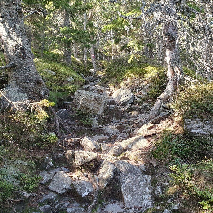 - zu Beginn auf einem Pfad und in Folge entlang einer Forststraße weitergehen