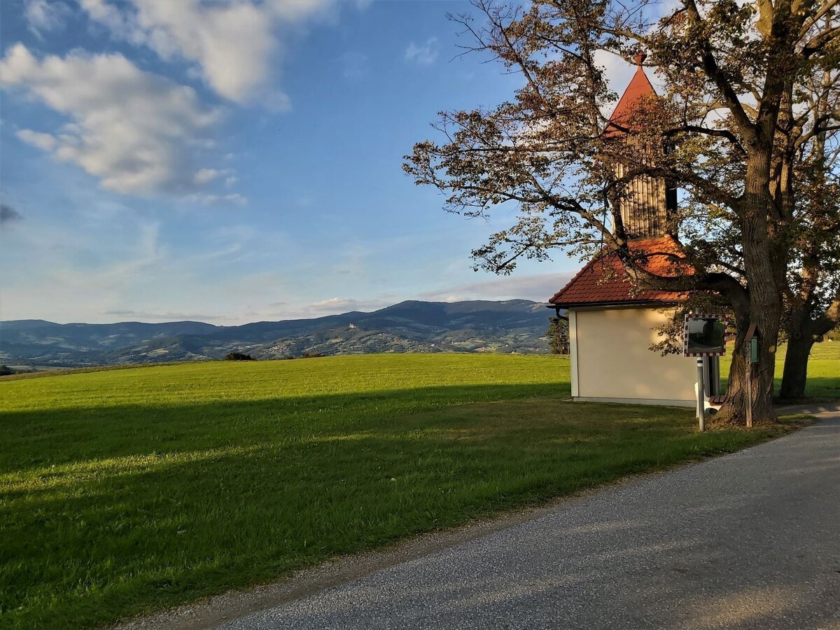 - An der nächsten Kreuzung bei einer Wegkapelle fahren wir rechts hinunter in Richtung St. Johann/Herberstein.