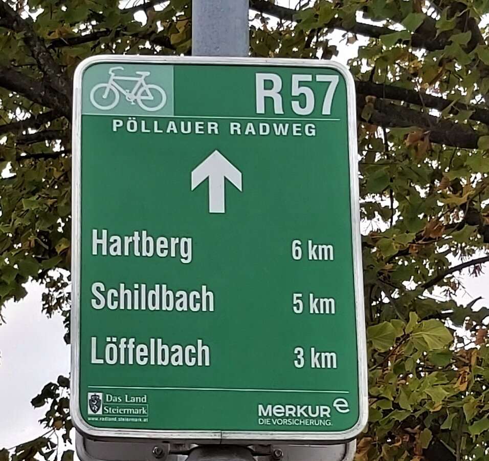 - Wir steigen in den R57/Pöllauer Radweg ein und fahren in Richtung Stubenberg/Pöllauberg.