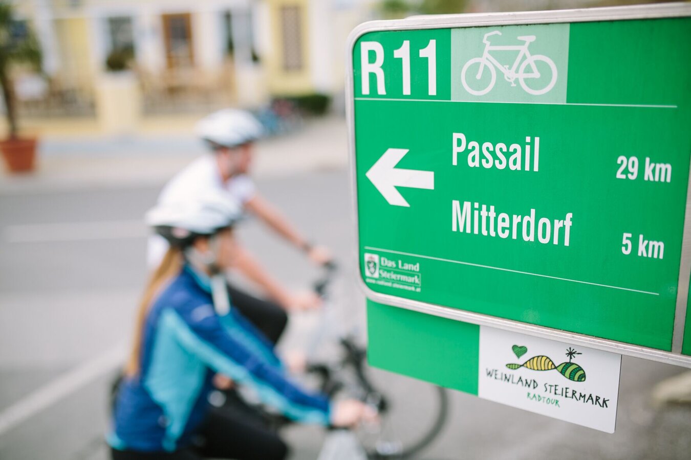 • Danach radeln wir kurz zurück zur Landesstraße und überqueren diese in Richtung Breitegg bzw. St. Ruprecht an der Raab. Wir radeln entlang der wenig befahrenen Straße am Höhenrücken immer gemütlich bergab nach St. Ruprecht an der Raab.