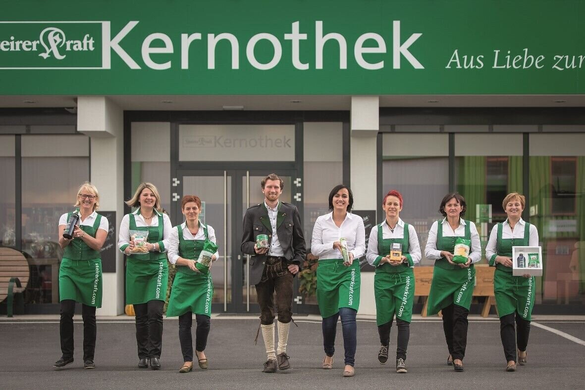 • Dann haben wir schon die Kernothek erreicht. Dort schauen wir den Ölmüllern über die Schulter, erfahren alles über Kürbiskernöl, Käferbohne und Mais und finden einen großen Verkaufsladen für steirische Köstlichkeiten vor. Danach radeln wir denselben Weg wieder zurück nach St. Ruprecht an der Raab.