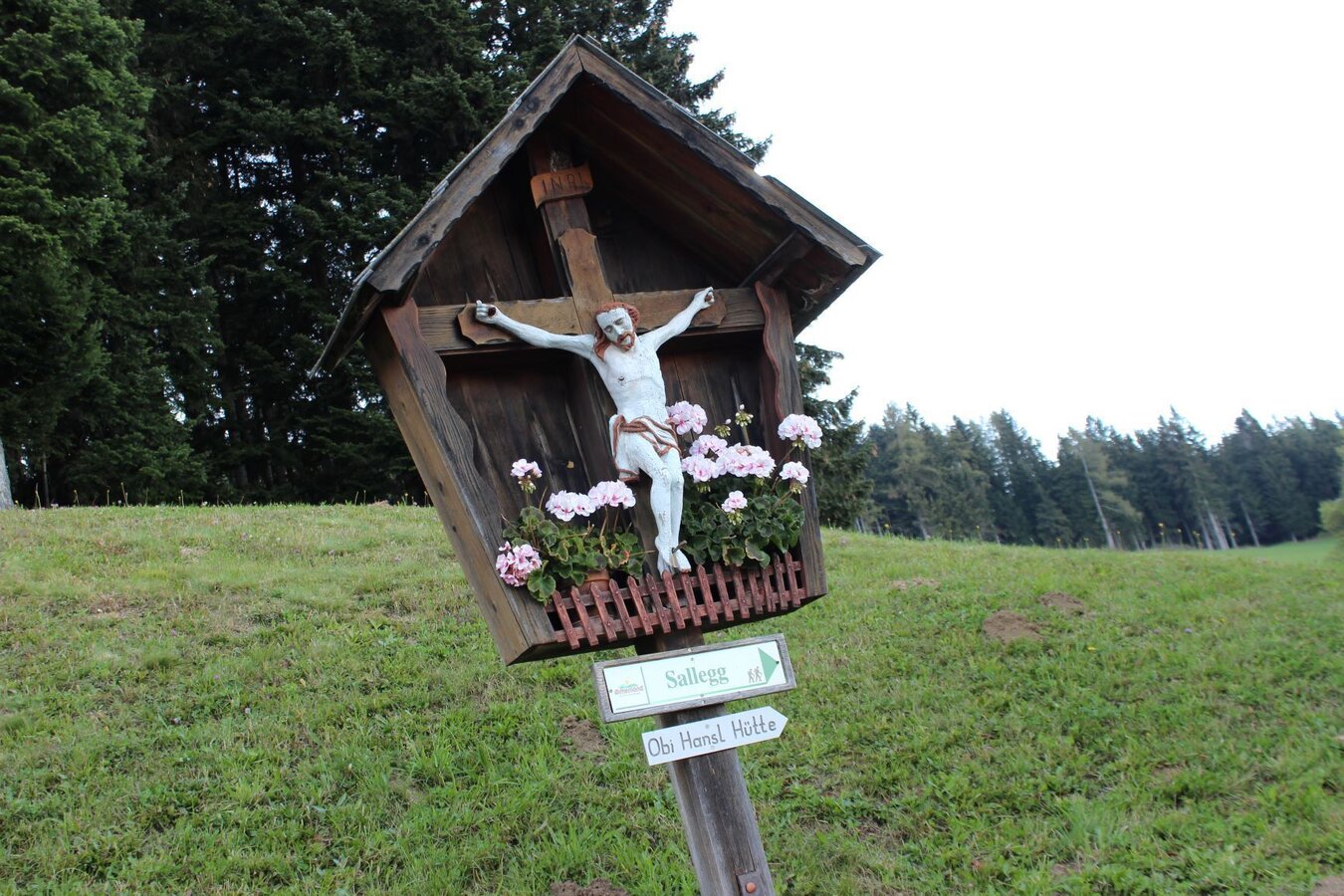 - Auf dem ebenen Forstweg erreichen wir in Kürze das schöne, erst kürzlich restaurierte „Zahenhoferkreuz“.