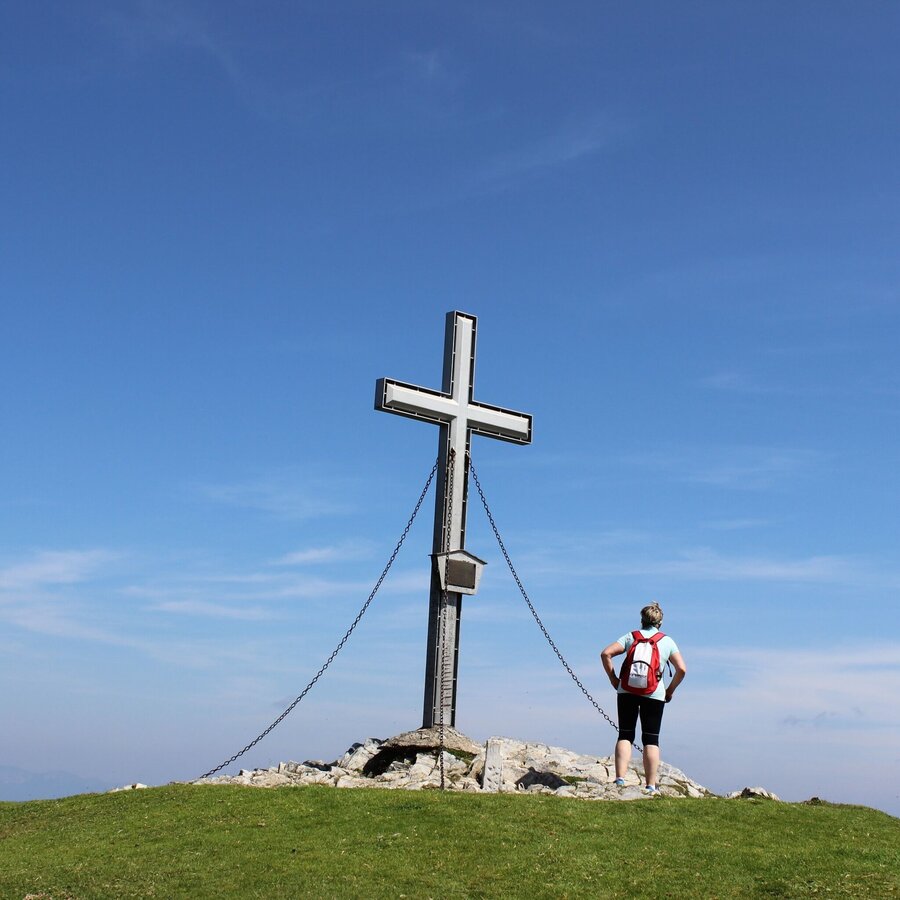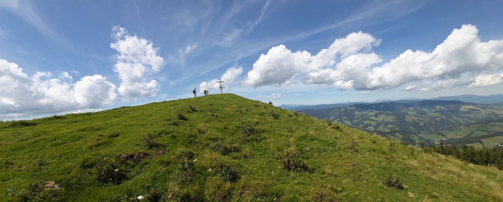 - Beim Plankogel-Gipfelkreuz haben wir den höchsten Punkt der Wanderung erreicht, der Ausblick hier ist dementsprechend grandios.