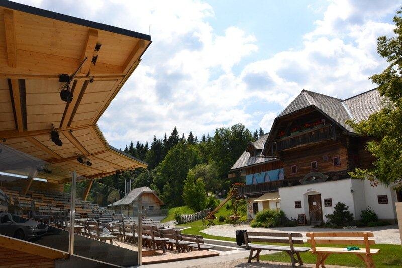 - Wir gehen ins Ortszentrum, hier warten Einkehrmöglichkeiten und die große Freiluftbühne des Huab'n-Theaters.
