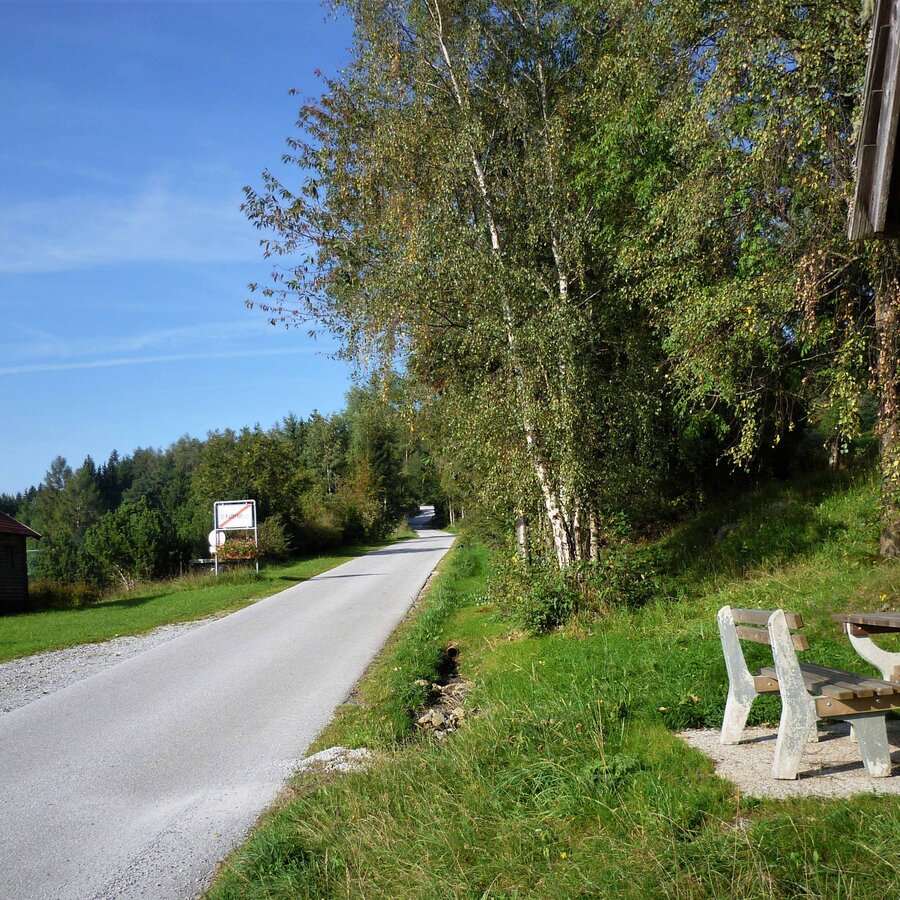- Zunächst wandern wir durch einen Wald, über eine kleine Wiese, weiter über eine kleine Brücke, wieder in den Wald, wo der Weg dann die Sommeralmstraße kreuzt.