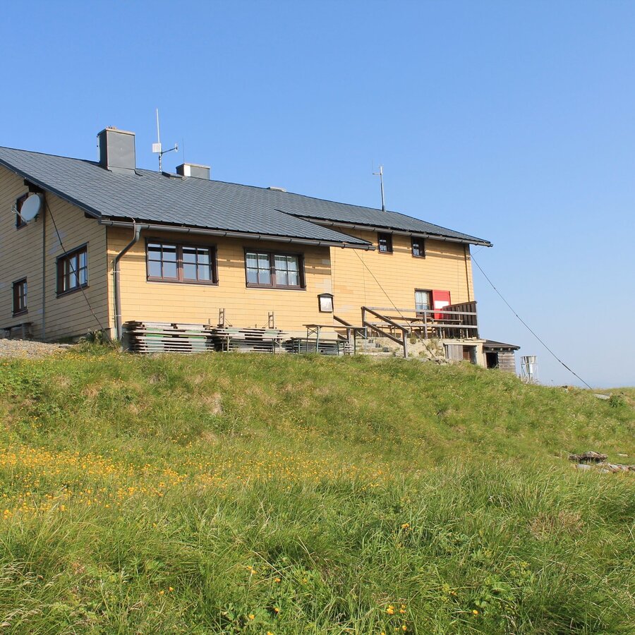 - Nach dem Feistritzsattel gelangt man über sanft ansteigende Almen (sogenannte „Schwaigen“) auf den 1.743 m hohen Hochwechsel mit dem Wetterkoglerhaus, unserem ersten Etappenendpunkt