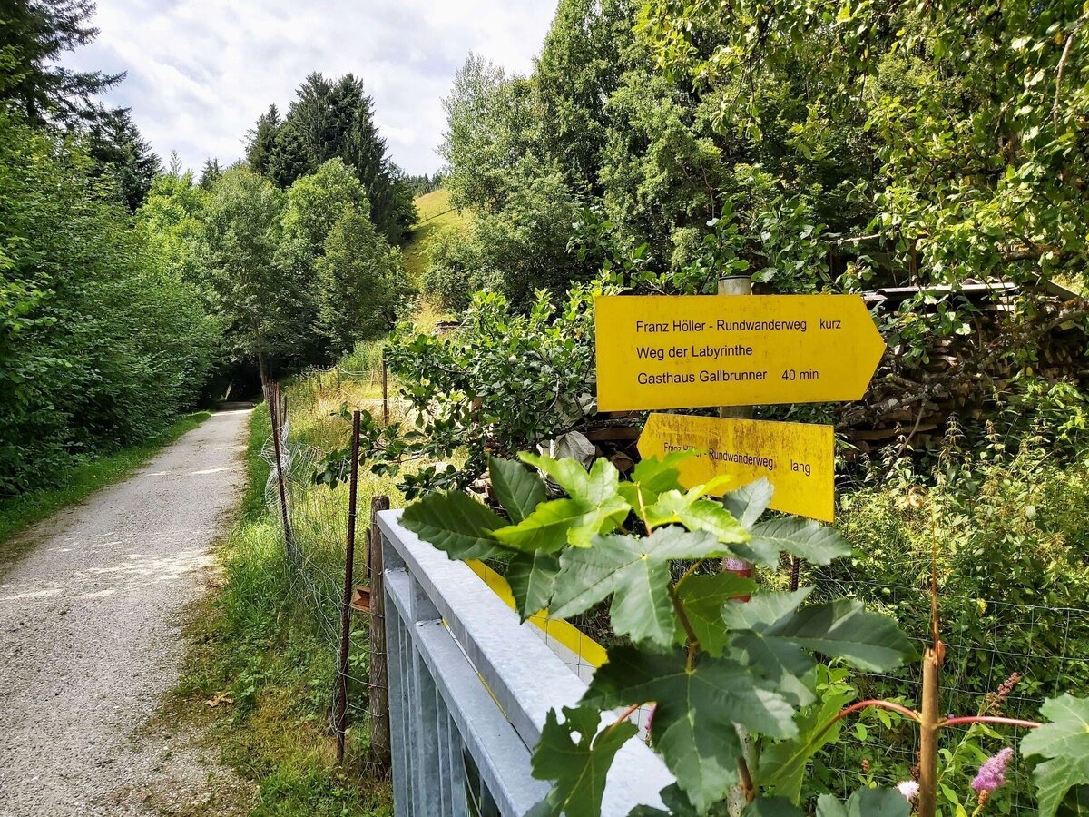 Der Weg ist durchgehend mit „Weg der Labyrinthe“ (gelbe Tafeln) markiert