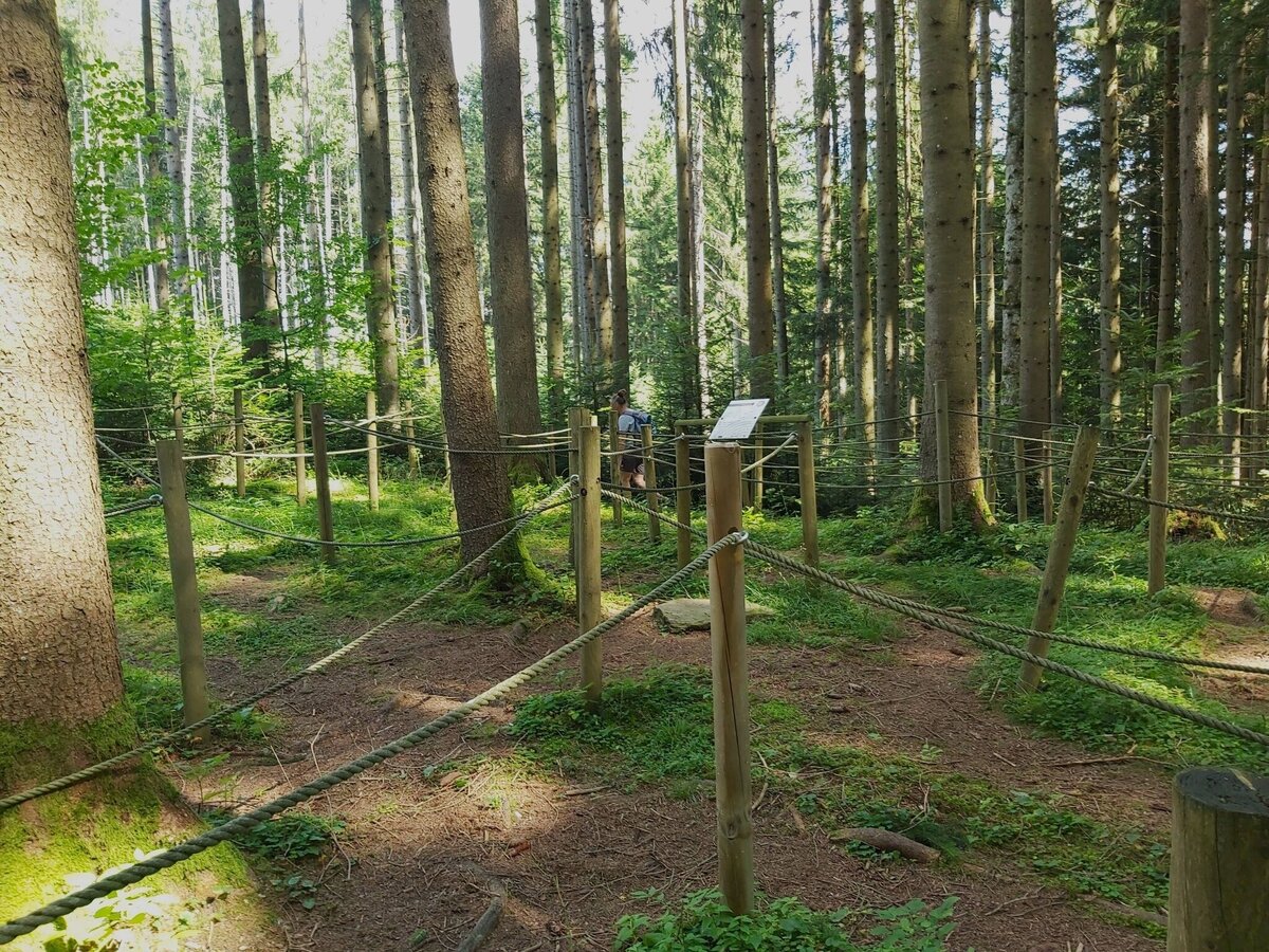- An der Wegkreuzung gehen wir links weiter und sind bald am Seillabyrinth.