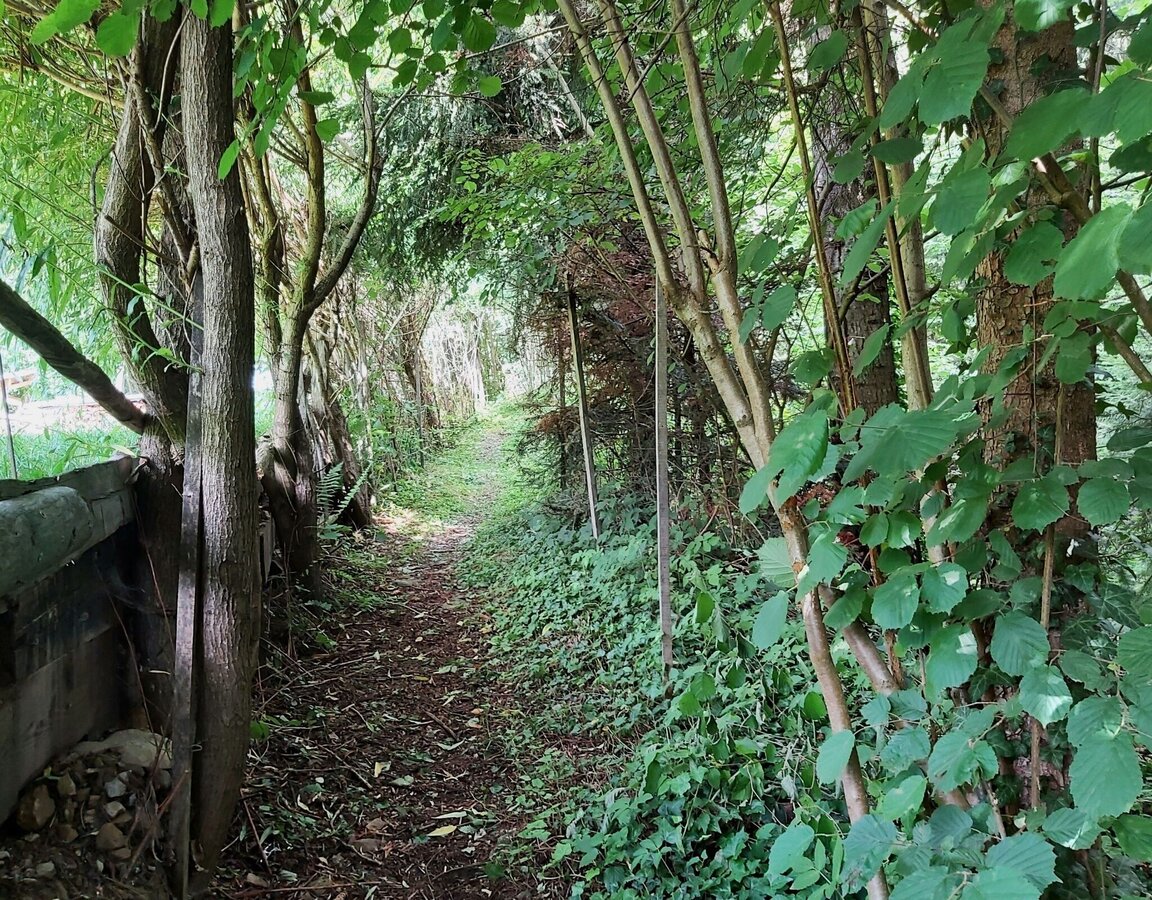 - Über die Wiese gehen wir rechts hinauf bis zum Gehöft Waisengg 14, durch den Hof gehen wir rechts weiter.