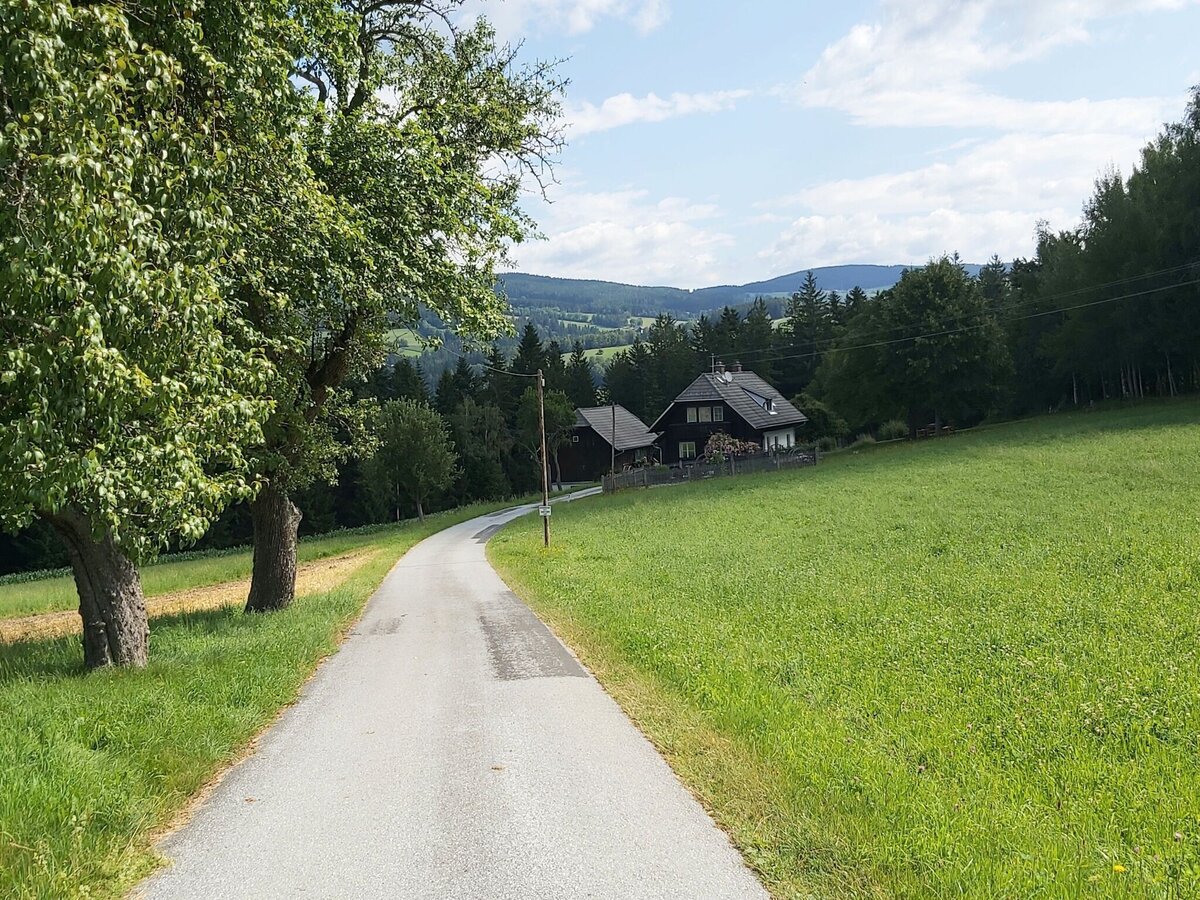 - Vor dem Gasthaus bzw. an der Schanzsattelstraße biegen wir links ab, gehen ein kurzes Stück, bevor wir rechts in die Landesstraße einbiegen.