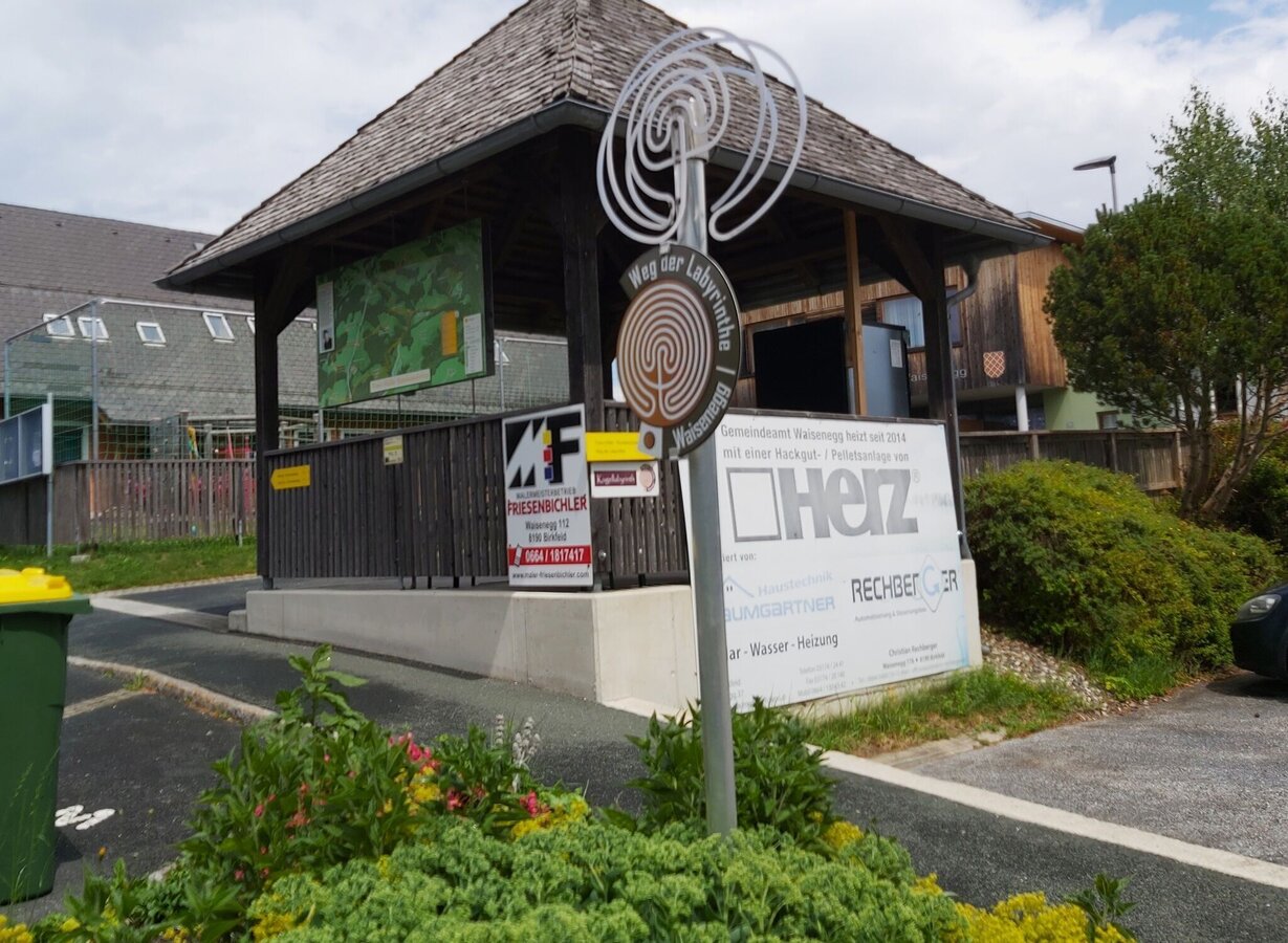 Start: Holzpavillon im Ortszentrum von Waisenegg