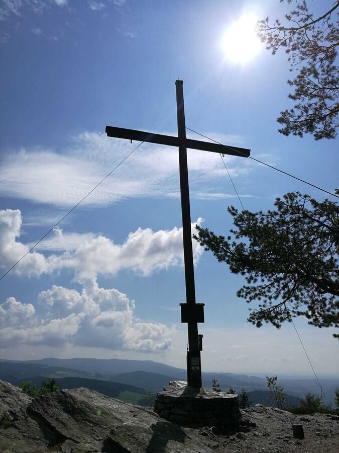 Einer dieser herrlichen Rundblicke erwartet Sie beim Gipfelkreuz des Arzbergs auf 1111 Meter Seehöhe. Den Einkehrschwung bei der etwas unterhalb gelegenen Arzberghütte dürfen Sie auch nicht verpassen.