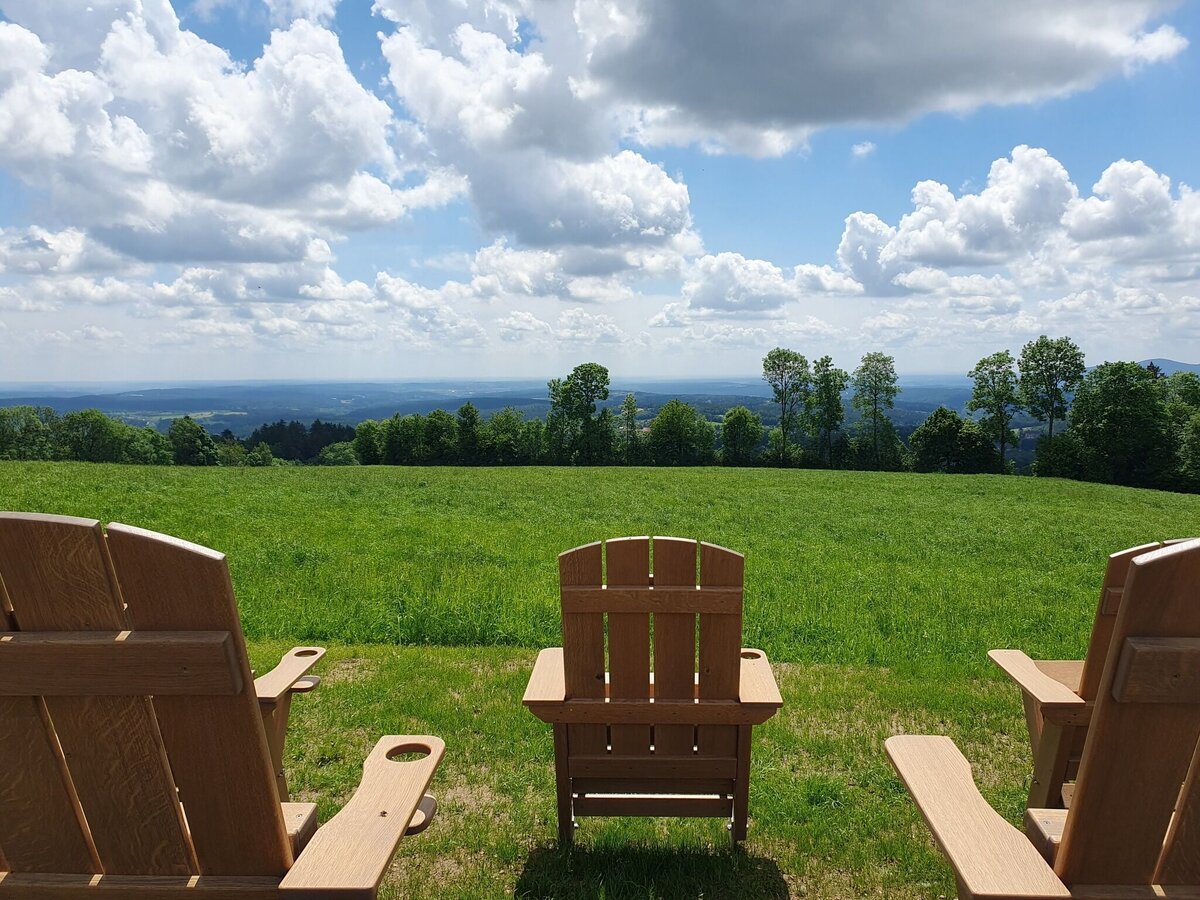 - Bald kommen wir an der Abzweigung zu rechts hinunter vorbei, die sich für eine Einkehr empfiehlt. Vor uns liegt jetzt die ganze Oststeiermark, wir haben einen wunderbaren Ausblick.
