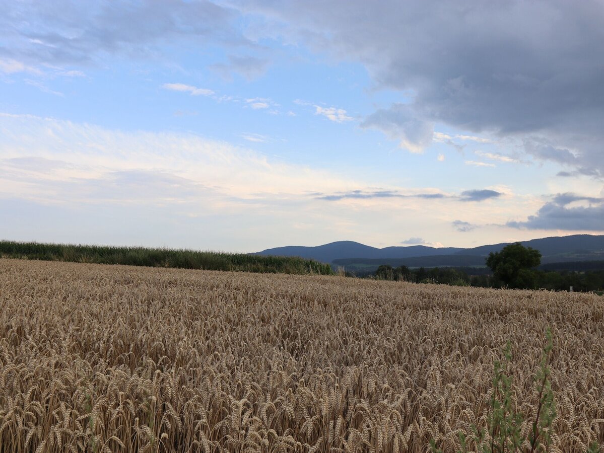 • links in den Wald über eine kleine Anhöhe und einem Bauernhof kommen wir wieder zur Straße und zu Infotafel "Biologischer Landbau" weiter zum Bildstock Winkler Kreuz wo wir rechts abbiegen.,