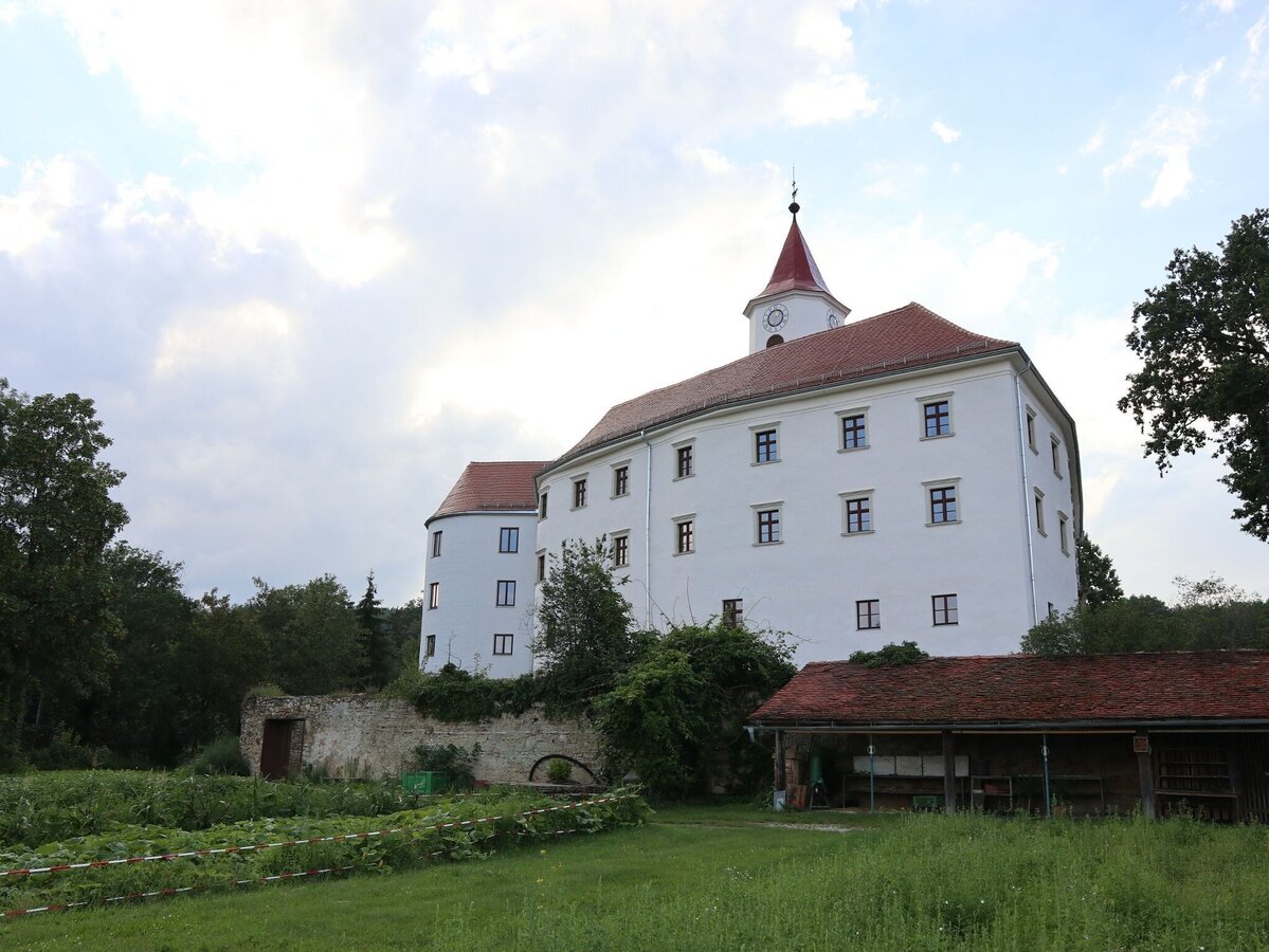 • nun folgen wir dem Weg zum Schloss Kirchberg wo die Infotafel "Schloss Kirchberg am Walde" über die Geschichte des Schlosses Informiert und die Infotafel "Land- und forstwirtschaftliche Fachschule" uns über die im Schloss untergebrachte Schule erzählt,