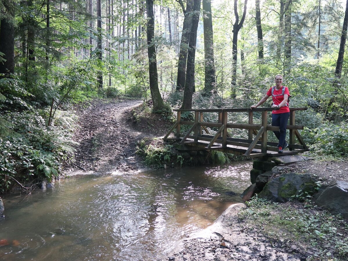 • über die Holzbrücke kommen wir zum steilen Aufstieg nach Eichberg,