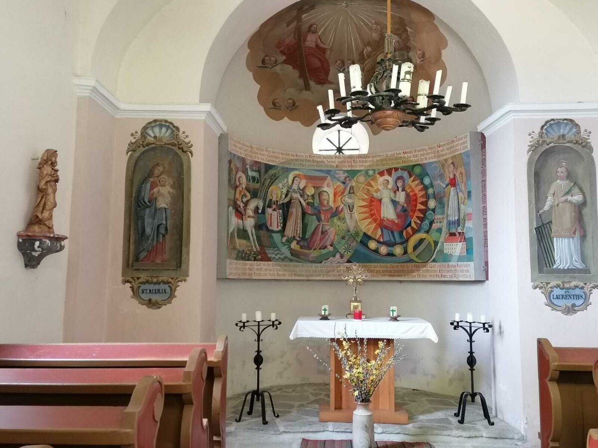 • oben angekommen steht die Infotafel "Wanderlust I". Weiter gehen wir zur Kirche Eichberg mit der gleichnahmigen Infotafel und dem Blick auf das Schloss Aichberg,