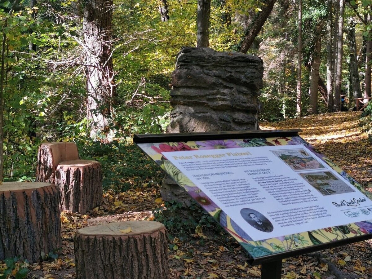 - Der Weg startet - wie könnte es anders sein - bei der Kirche St. Kathrein am Hauenstein, der Lieblingskirche Peter Roseggers, wunderschön etwas oberhalb des Ortes gelegen