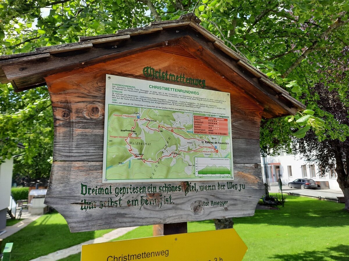 - Wir gehen den Weg jedoch nicht vom Geburtshaus nach St. Kathrein wie es der kleine Peter mit seiner Familie alle Jahre wieder in der Christnacht gemacht hat, sondern wandern bergauf vom idyllischen Ort St. Kathrein am Hauenstein zum Geburtshaus