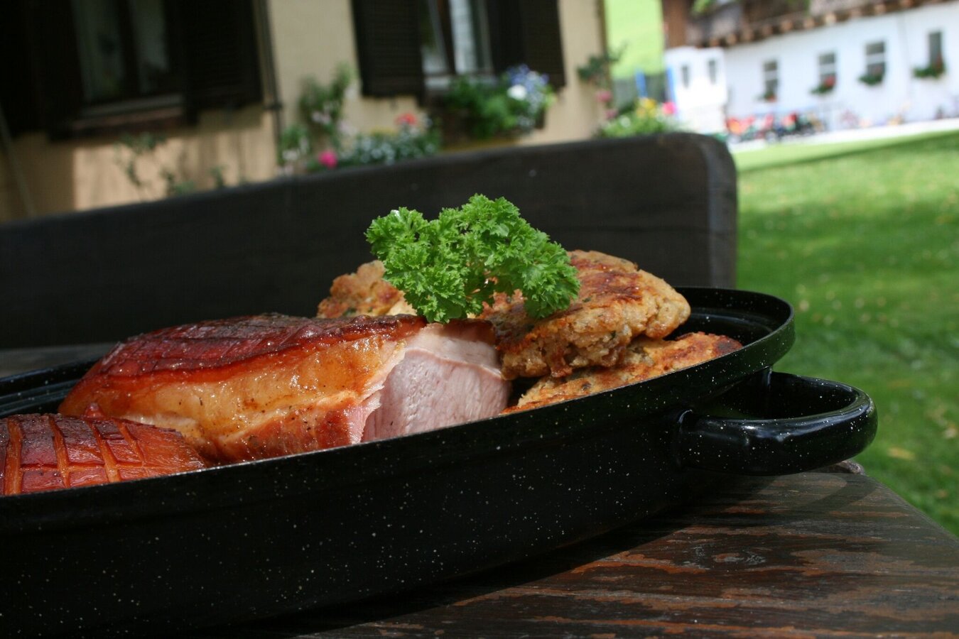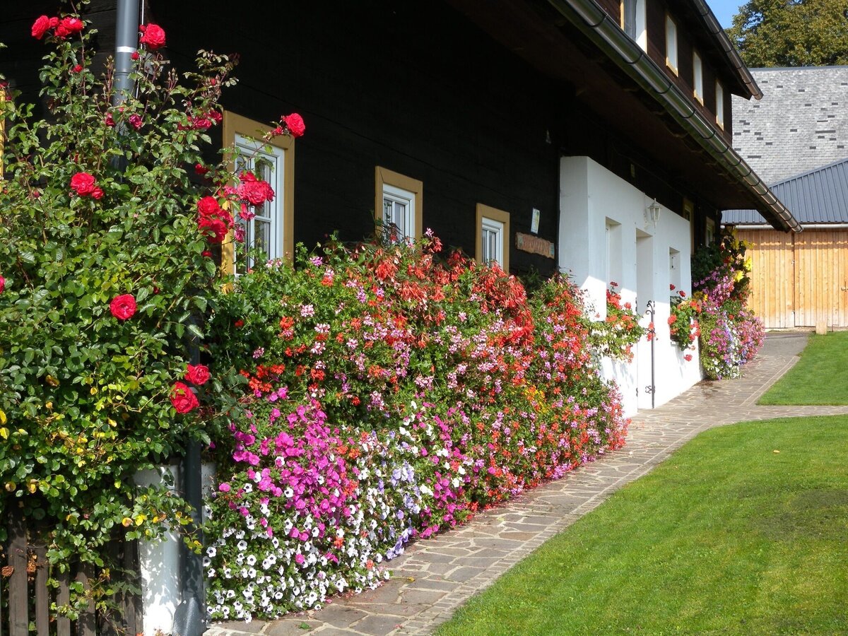 - Nach einer kurzen Rast marschieren wir weiter vorbei an duftende Bergwiesen, gepflegten Feldern und blumengeschmückten Bauernhäusern