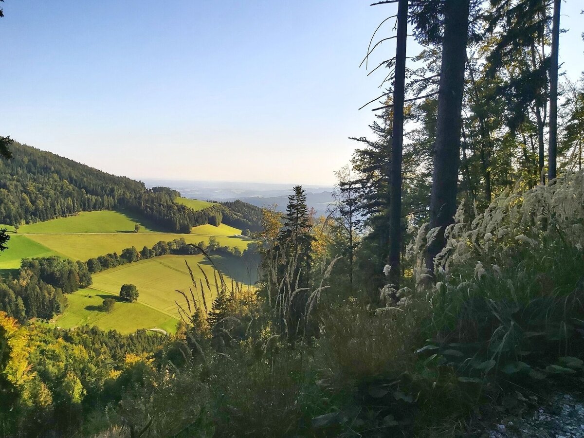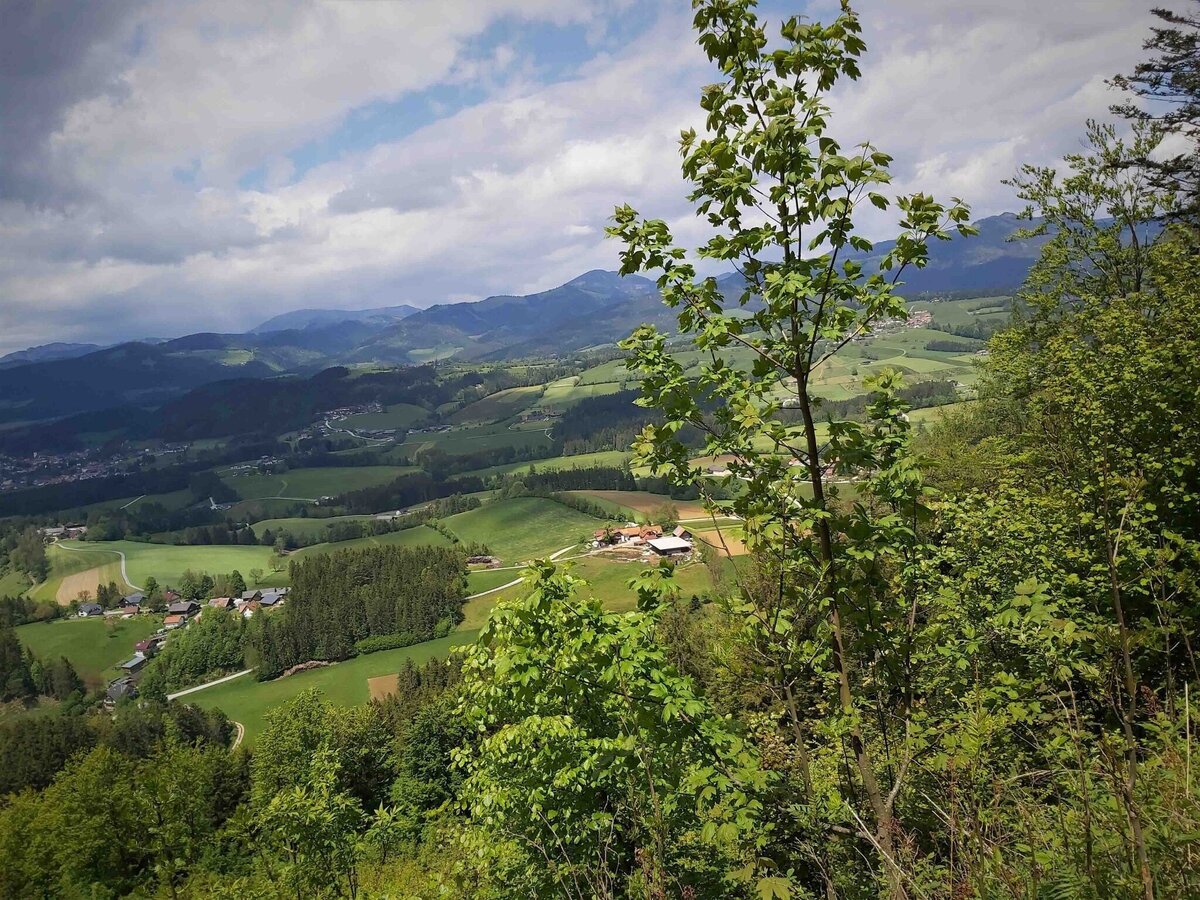- Wir gehen jetzt den Schotterweg hinunter bis nach Gschaid, rechts hinaus haben wir immer wieder schöne Ausblicke.
