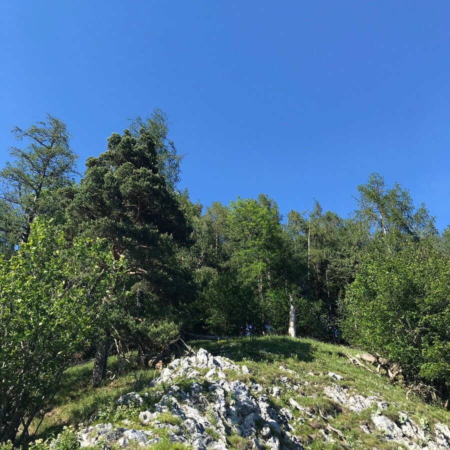 - Immer den Österreichflaggen hinterher kommen wir nach dem ersten Anstieg auf eine Anhöhung mit einer Sitzmöglichkeit.