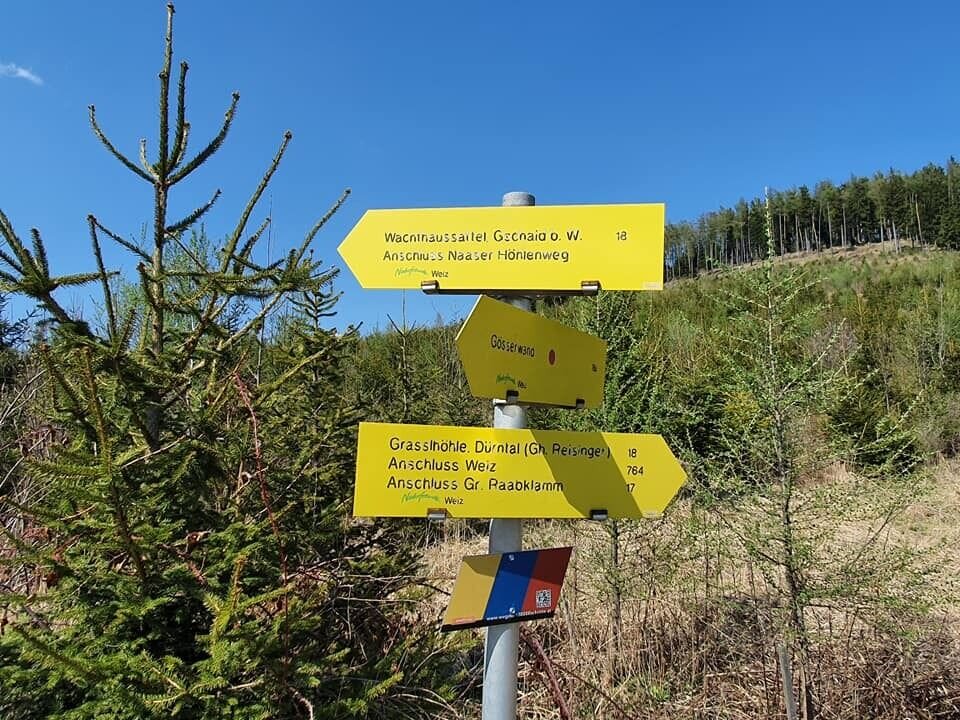 - Bei der Grasslhöhle angekommen, folgen wir dem Weg Nr. 18 Richtung Gösser.