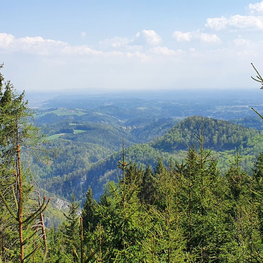 Die Region ist bekannt für seine Höhlensysteme. Insbesondere das Katerloch und die Grasslhöhle an der unser Weg vorbeiführt, erfreuen sich zahlreicher Gäste und sorgen für Staunen. Der Naaser Höhlenweg, dessen Beschilderung wir auf unserer Tour mehrmals begegnen, verbindet diese Höhlensysteme. Der Ausblick entang der Tour Richtung Naturpark Almenland wie auch das Hügelland der Oststeiermark und die Stadt Weiz ist traumhaft schön.