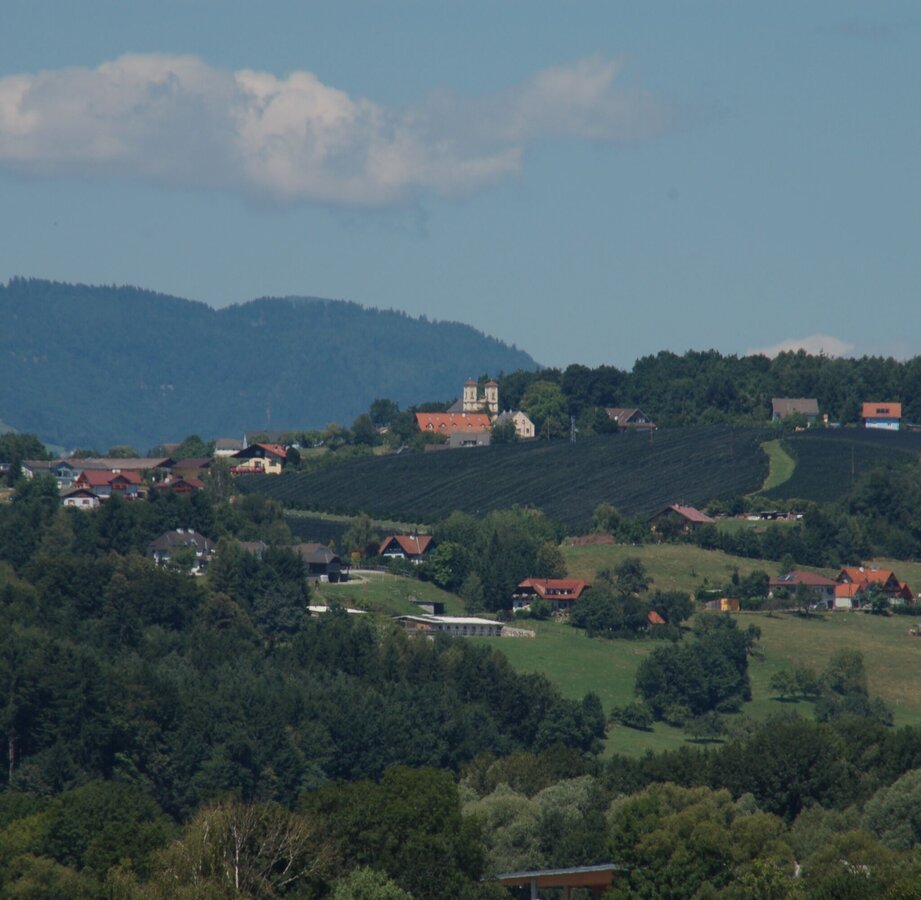 - Dem Radweg folgend geht es durch kleine Orte und Siedlungen gemütlich leicht bergab nach Unterfladnitz, wo wir nach einer "Rechts-Links-Kombination" über Neudorf nach Arndorf gelangen. Hier ist St. Ruprecht an der Raab schon längst von weitem zu sehen.
