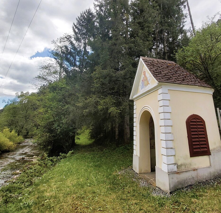 - Hier biegen wir rechts hinauf ab in Richtung "Passail" und kommen bald an der Abzweigung hinauf zum Ulrichsbrunn vorbei. Den kurzen, aber relativ steilen Anstieg hinauf zur Kapelle können wir auch zu Fuß gehen.