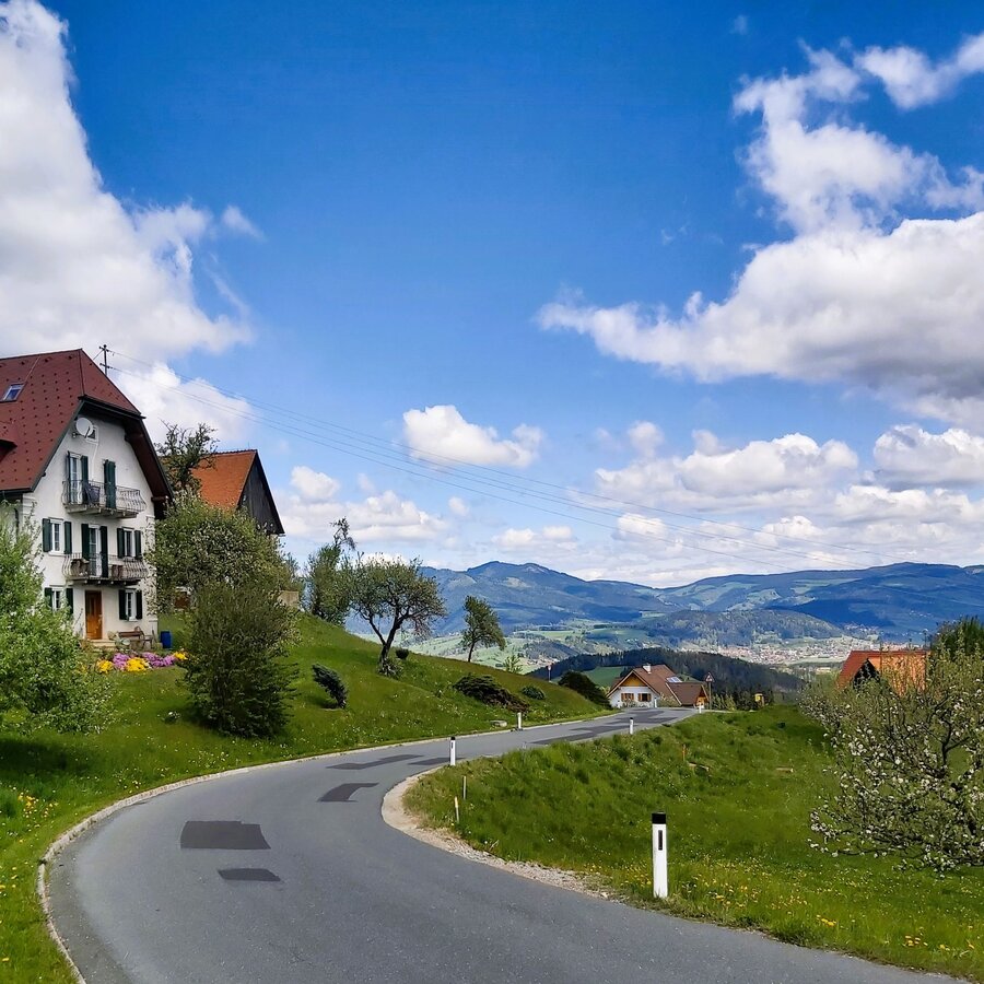 - Auf der kurvigen Nebenstraße fahren wir hinunter ins Ortszentrum von Ankenhofen und weiter am Ankenhofenweg bis zur Kreuzung mit der Semriacherstraße im Wöllinggraben.