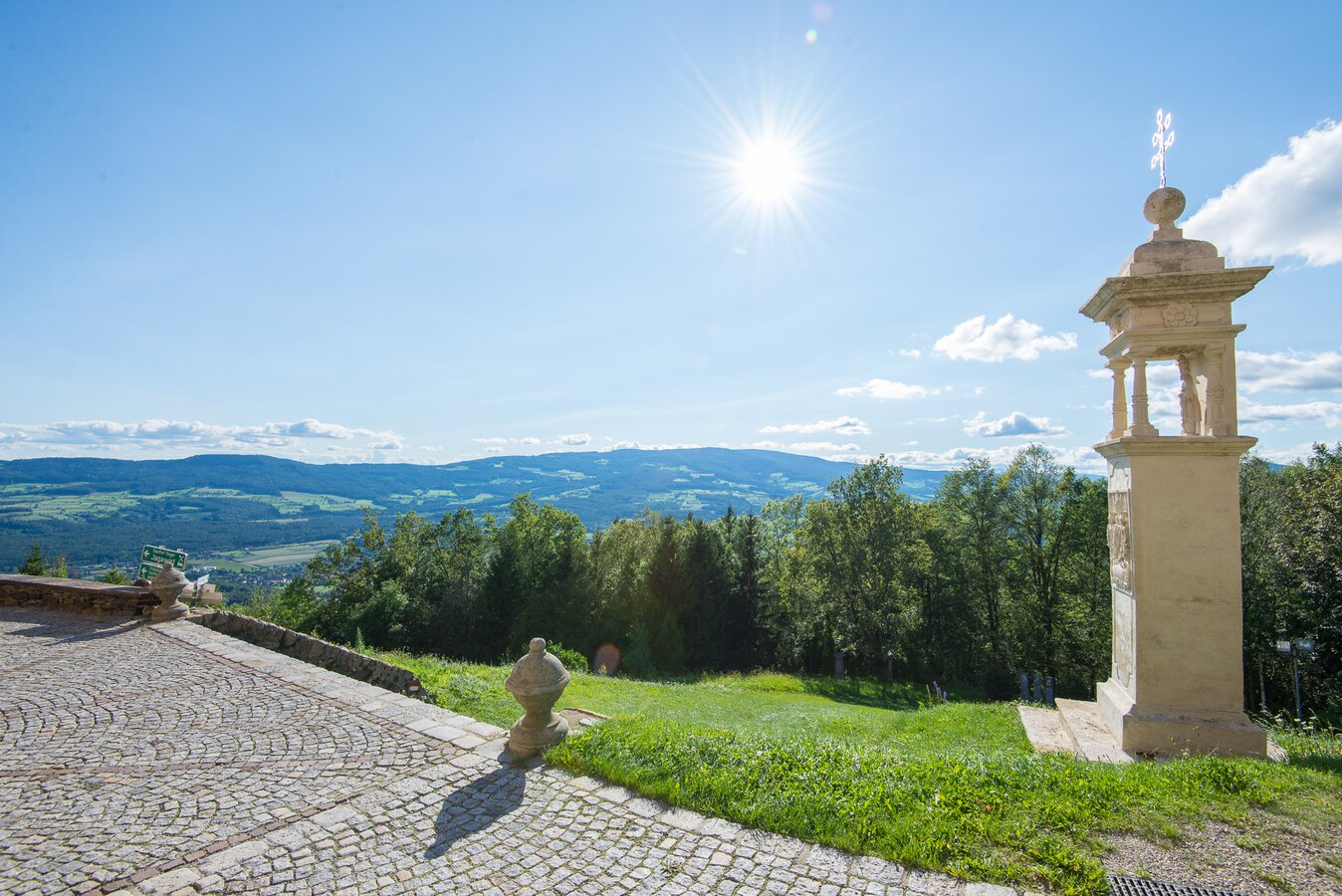 - Gegenüber der Naturpark Arena biegen wir auf den Europabesinnungsweg hinauf zur Wallfahrtskiche. Ein Besuch mit kurzem Stoßgebet und ein Blick hinter den Altar zur zweiten Madonna lohnen sich.