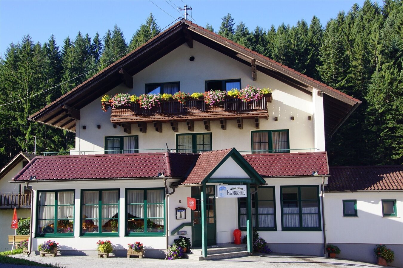Einkehr- und Übernachtungsmöglichkeiten im Gasthaus Hammerlschmied sowie auch am Schanzsattel im Berggasthaus.