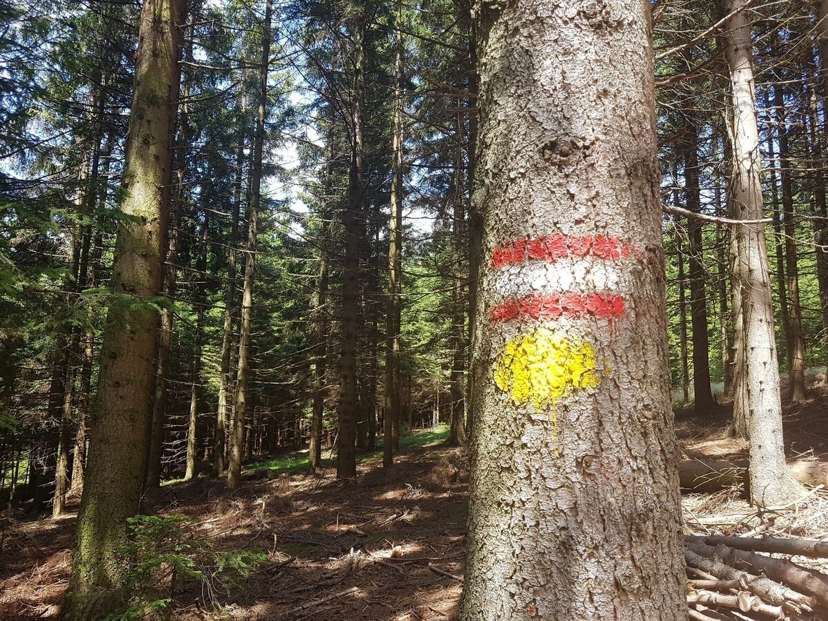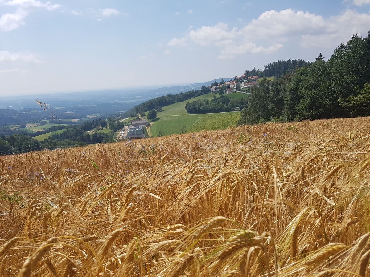 - An der Glückskapelle halten wir uns links und kommen auf dem Wanderweg rot-weiß-rot Nr. 950 Richtung Grafendorf und Hartberg am Olmstoll (Gasthaus) vorbei.