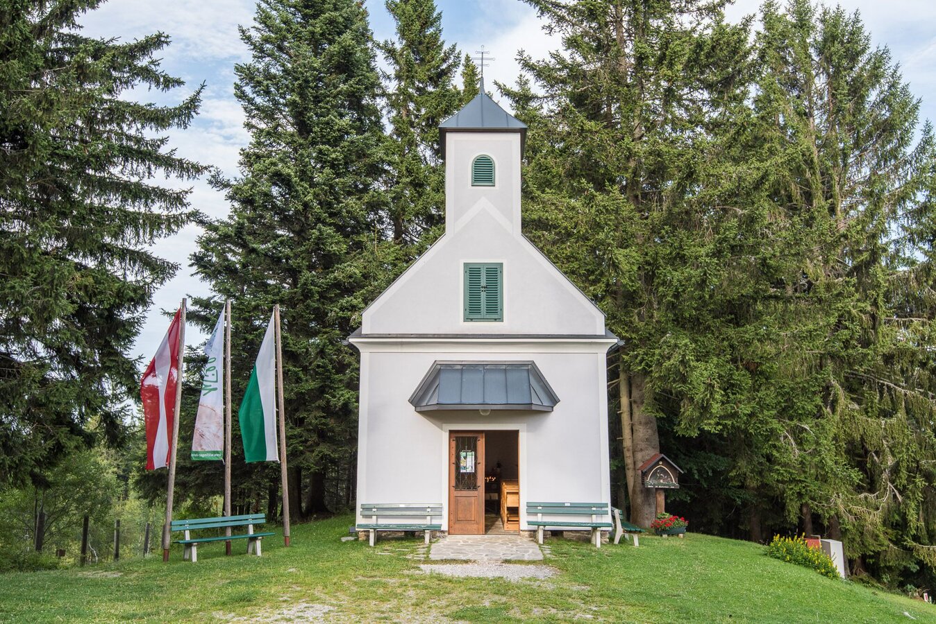 - Uns an die Markierung Nr. 942 haltend erreichen wir ca. nach mehr als einer Stunde den Masenberg mit Gipfelkreuz, Glückskapelle und Schutzwirt.