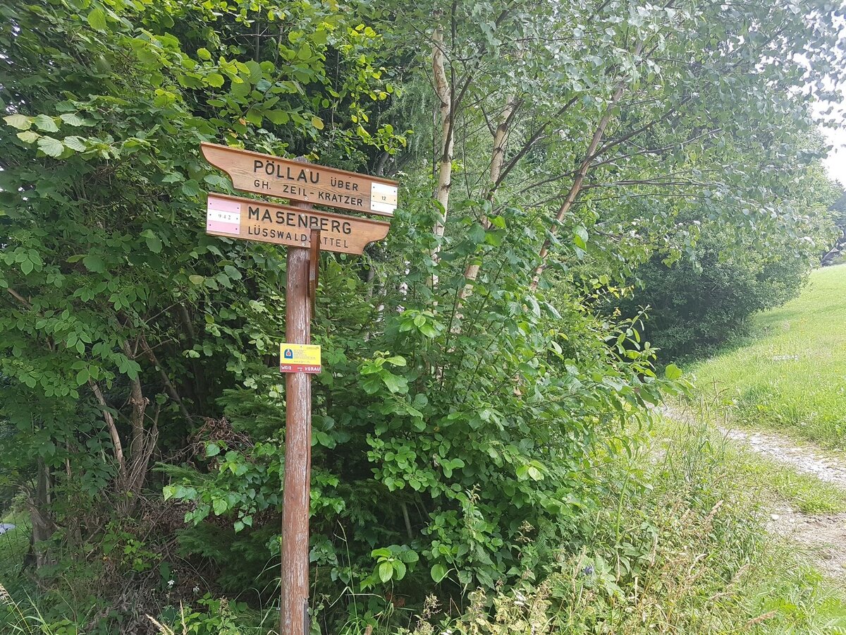 - Dort angekommen, halten wir uns an den Wegweiser Richtung Pöllauberg, der Markierung rot-weiß-rot Nr. 943 bis wir auf die Pöllaubergstraße L431 treffen.