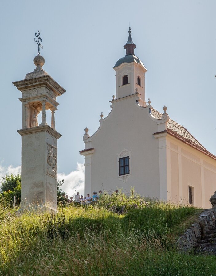 - Bei der Bushaltestelle „Oberneuberg GH Scherf“ links abzweigen, der rot-weiß-roten Markierung Nr. 946 folgen und ca. 3 km gemütlich die Asphaltstraße entlang bis zur Wallfahrtskirche St. Anna wandern.
