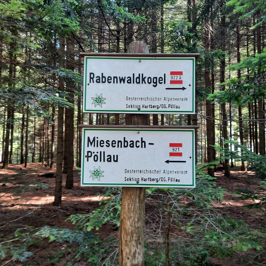 - Dieser führt uns - abgesehen von dem kurzen Umweg über den Rabenwaldkogel - zur Weggabelung, wo wir auf den Wanderweg Nr. 1 stoßen.
