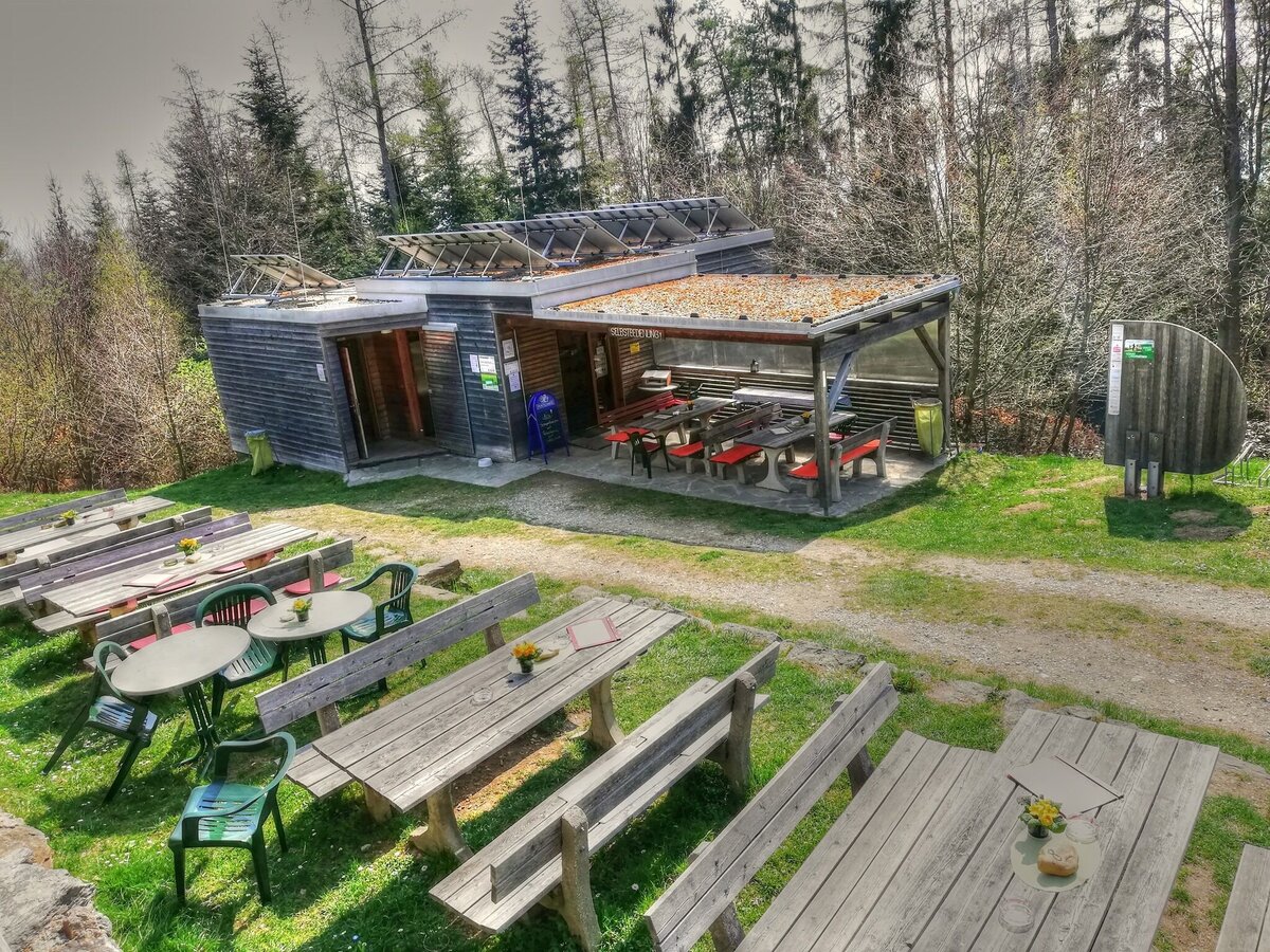 Erklimmen Sie die Aussichtswarte kostenlos mit der GenussCard und kehren Sie beim Rastplatzerl zur Ringwarte ein: Hausgemachte Mehlspeisen, Snacks, Getränke
