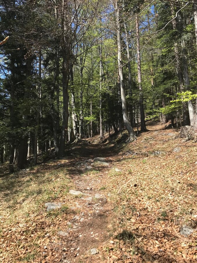 - Richtung Lärchsattel nach links abgebogen folgen wir dem Forstweg. Bald kommen wir zu einer Kreuzung bei der wir uns rechts halten um auf den Lärchsattel zu gehen. Hier folgen wir dem Weg weiter bis wir schon das Gipfelkreuz des Lärchsattels sehen.