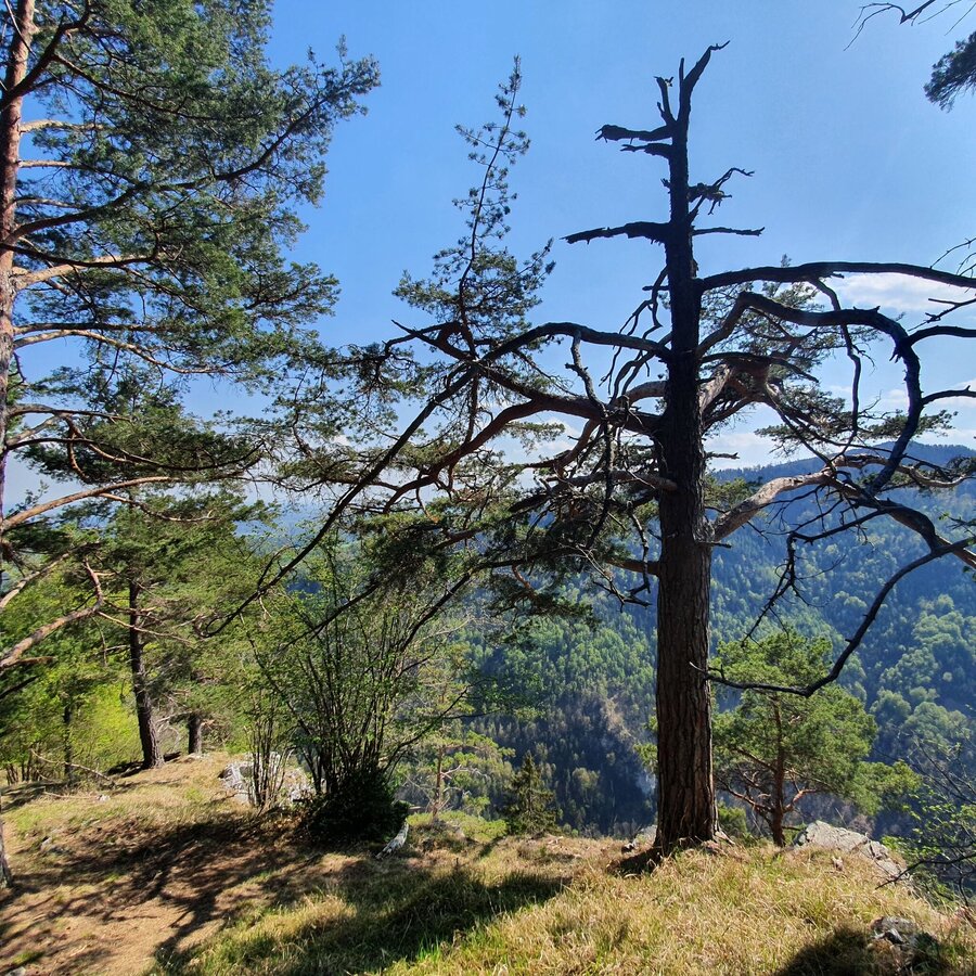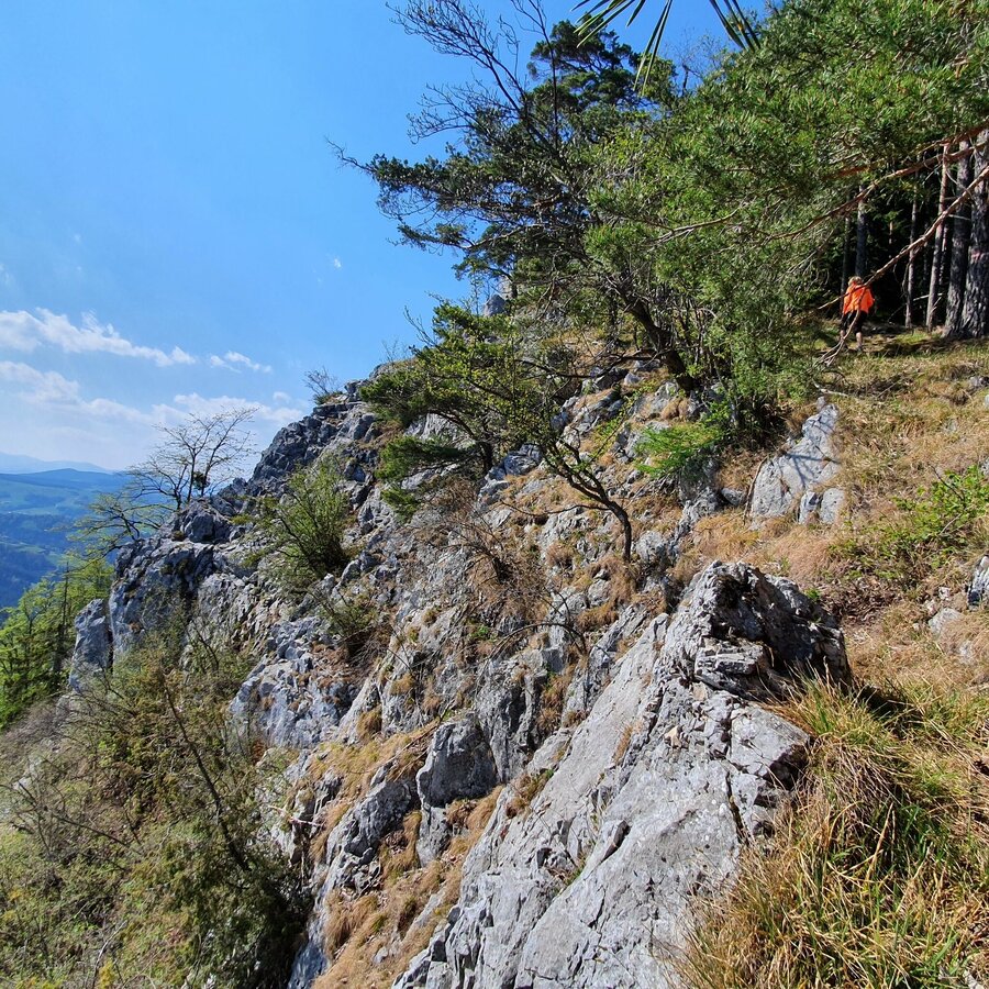 - Zuerst folgen wir den Wegweisern Richtung Naaser Höhlenweg. Bei der Grasslhöhle angekommen, folgen wir dem Weg Nr. 18 Richtung Gösser. Immer den Österreichflaggen hinterher kommen wir nach dem ersten Anstieg auf eine Anhöhung mit einer Sitzmöglichkeit.