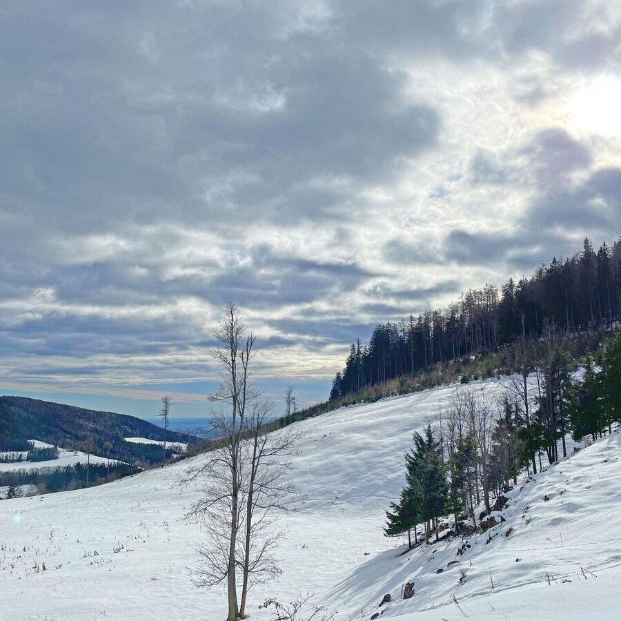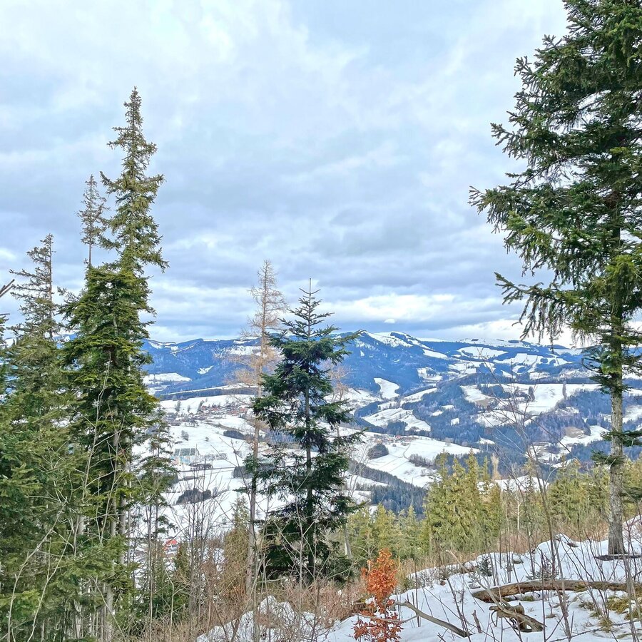 - Nach einer kurzen Rast folgenden wir den Schildern weiter nach links Richtung Gösser. Bald schon erreichen wir den höchsten Punkt des Gössers. Wir folgen beim Abstieg den Markierungen und gehen auf einer Forststraße Richtung Lärchsattel.