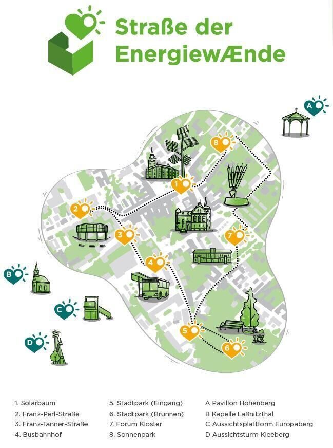 An 8 Stationen (mit informativen „EnergiewAEnden") im Innenstadtbereich werden Besucher mit umwelttechnischen Problemen und Lösungsansätzen für eine Energiewende konfrontiert.