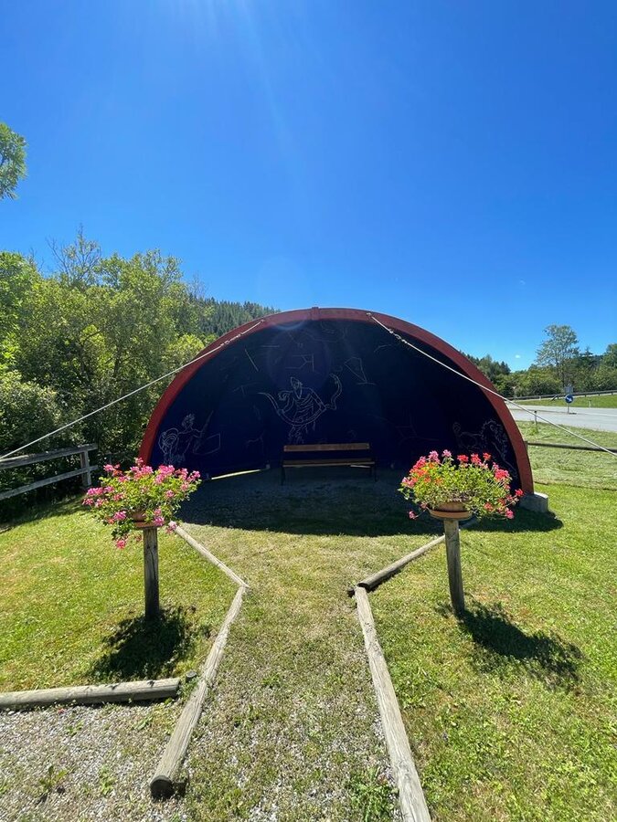 - Ausgehend vom Parkplatz der Gemeinde Rettenegg geht es runter Richtung Hauptstraße zur ersten Station, den Sternenpavillion vom Planetenweg.