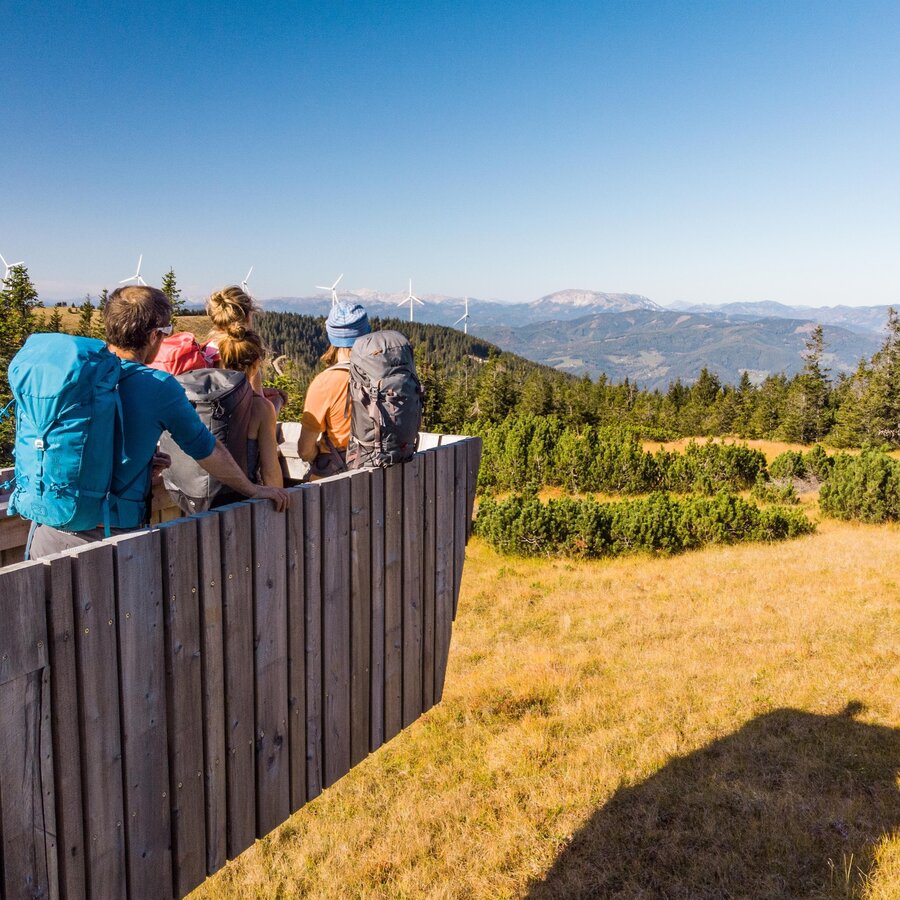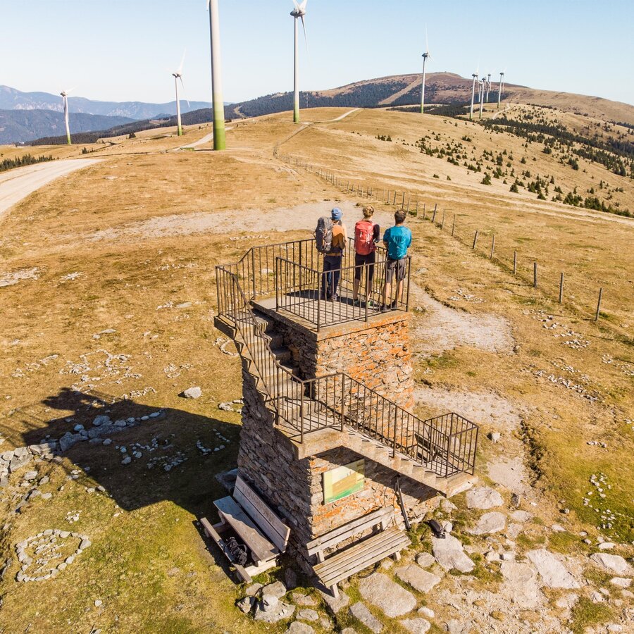 - Am Schwarzriegel angekommen gehen wir geradeaus und folgen dem Weg 02 über die Peter Bergner Warte bis hin zum Roseggerhaus.