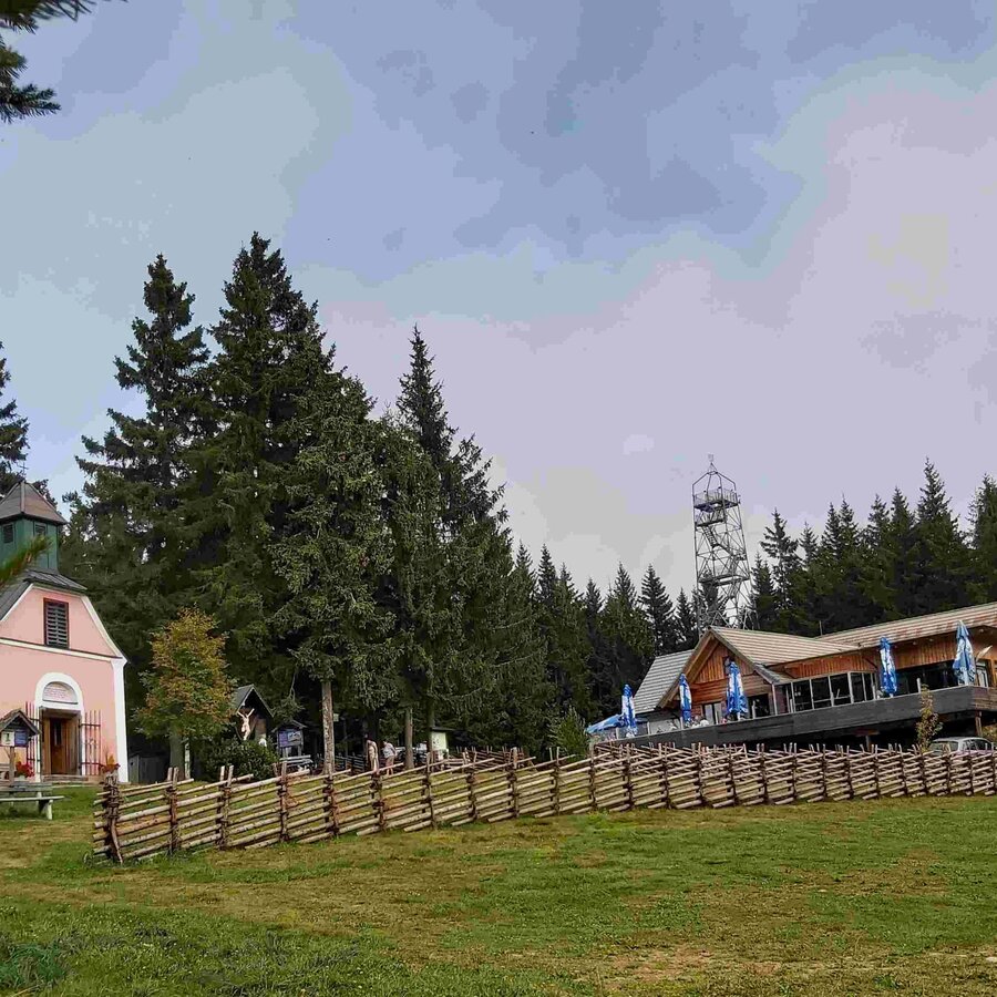 - Beim Kreuzwirt queren wir die Landesstraße und folgen nun der Markierung zum Aussichtsturm auf der Wildwiese.
